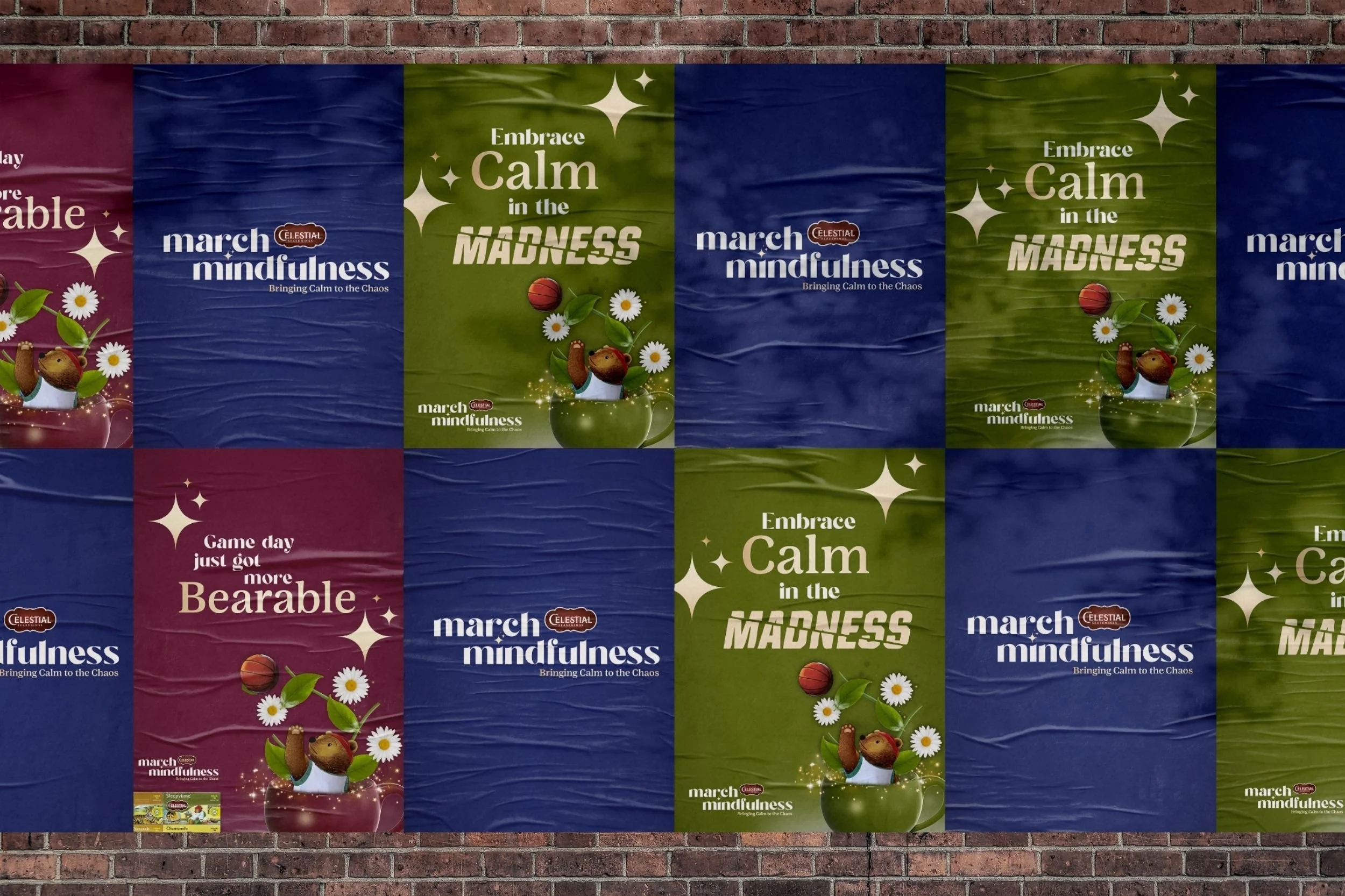 Introducing calm before the frenzy. Celestial Seasonings anticipates the chaos with calming OOH in the cities that are home to high-attendance universities like UConn, UMich, and Tennessee.