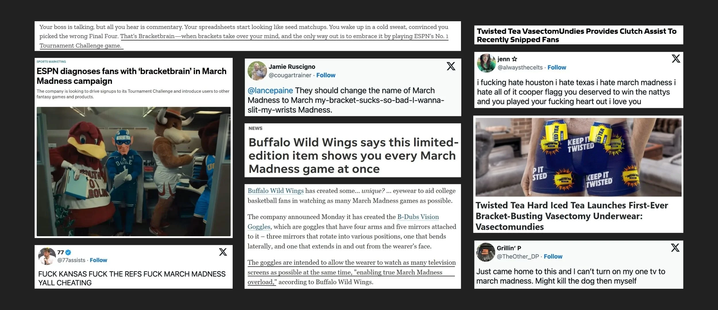 Brands feed into the frenzy of March Madness, but no one serves the people most in need of calm.