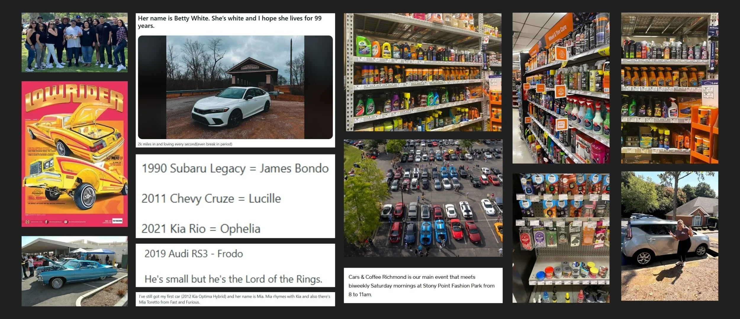 Meet Kiki the Kia Soul and Betty White the Acura RDX. Learn about Hoopty, Cutie Patitudie, and Wilma Jean